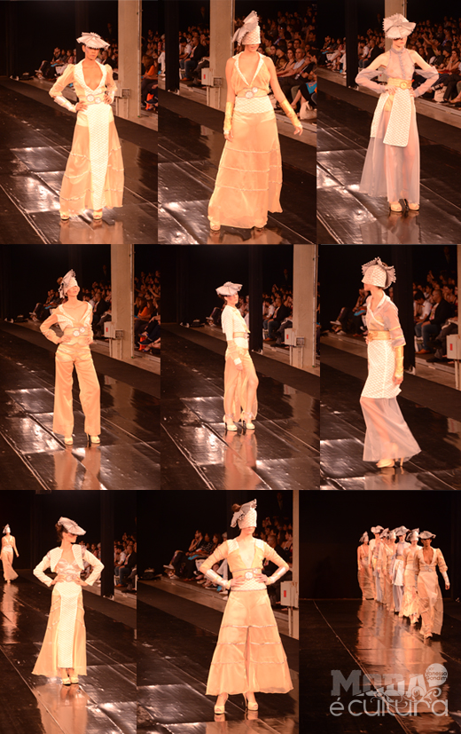 Redes e rendeiras. A edição foi por comprimento. Silhueta em I bem definida. Branco, bege, vermelho, azul e verde estão presentes. Modelagem muito bem elaborada. Maxi colares, braceletes e brincos. Maquiagem de maçãs do rosto marcadas. Tranças e flores nos cabelos. A última composição brilhou no desfile por ser construída por fuxicos e retalhos.
